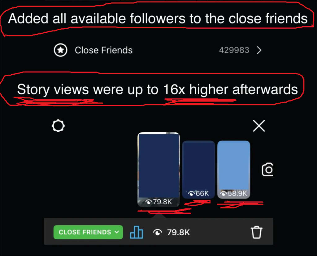 Stories posted for Close Friends often appear at the front of your followers’ Story feed. And is given priority.